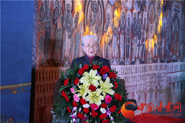 常沙娜先生與敦煌研究院副院長羅華慶共同為“中國敦煌石窟保護研究基金會常書鴻敦煌藝術專項基金”揭牌。