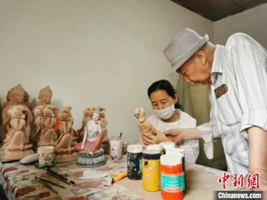 中新網(wǎng)蘭州9月2日電 (閆姣 馮志軍 高瑩)八旬敦煌彩塑藝人魯勤學(xué),耗時(shí)四十余載摸索敦煌彩塑的制作工藝,他還創(chuàng)新“立體”壁畫,將壁畫中的佛像形象都制作成了便于游客攜帶的彩塑。“我特別想通過(guò)自己微薄的力量把家鄉(xiāng)推介出去,想讓大家都知道敦煌彩塑的魅力。”他說(shuō)。