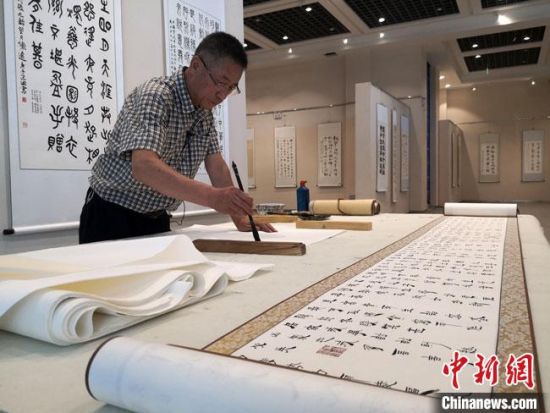 中新網(wǎng)蘭州9月22日電 (馮志軍 高瑩 閆姣)30多年前,因參與發(fā)現(xiàn)位于甘肅河西走廊大漠戈壁“深閨”中的懸泉置遺址,現(xiàn)場出土大量珍貴的簡牘,令現(xiàn)任敦煌市文化館美術(shù)室主任、敦煌市美術(shù)館展覽部主任朱群魂?duì)繅衾@了很多年。而此后,當(dāng)時(shí)出土簡牘上的漢簡書體,成為他研究、傳承和弘揚(yáng)的事業(yè)。