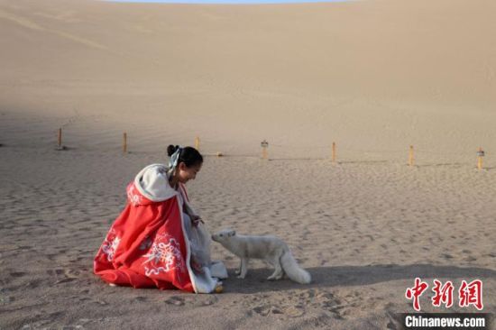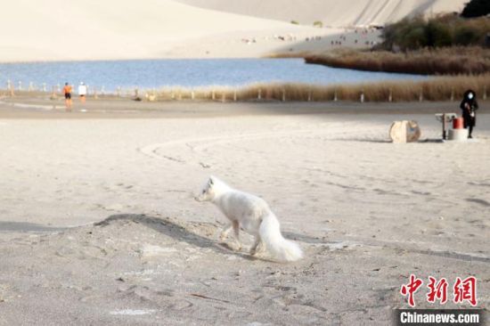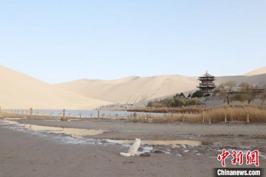 原標題:小白狐“打卡”甘肅敦煌鳴沙山月牙泉景區(qū)