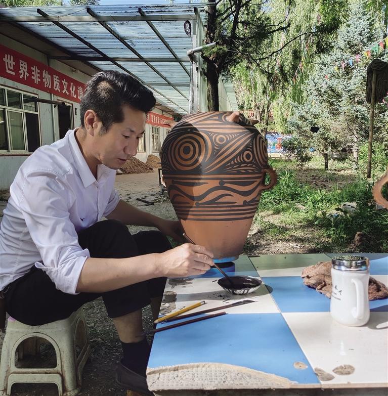 甘肅省境內(nèi)有著極為豐富的彩陶遺存,如大地灣文化、仰韶文化、馬家窯文化、齊家文化、四壩文化、辛店文化等。臨夏是甘肅彩陶出土最豐富的地區(qū),也是史前文化研究成果最顯赫的地區(qū)之一??脊虐l(fā)現(xiàn)表明,早在幾萬年前的舊石器時代晚期,臨夏就有人類活動的足跡。進入新石器時代以后,以馬家窯文化為代表的農(nóng)業(yè)部族開啟了史前文明的曙光,青銅時代的齊家、辛店等文化進一步創(chuàng)造了輝煌的文化成就。臨夏彩陶從新石器時代延續(xù)到青銅時代,以器型優(yōu)美、紋飾絢麗、色彩鮮艷、圖案多樣而久負盛名,故而臨夏又有“彩陶之鄉(xiāng)”的美譽。那么,除了博物館,還有沒有其他方式去了解久負盛名的彩陶文化呢?近日,記者采訪了來自臨夏的史前彩陶鑒定家和修復家,也是彩陶仿制技藝的非物質(zhì)文化遺產(chǎn)傳承人馬黑麥,他讓記者沉浸式體驗了彩陶文化的獨特魅力。