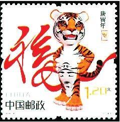 2010年1月5日發(fā)行第三輪生肖郵票第七套《庚寅年》特種郵票,全套1枚,由中央美術(shù)學(xué)院設(shè)計(jì)學(xué)院教授馬剛設(shè)計(jì)。設(shè)計(jì)者利用三維造型的特點(diǎn)采用擬人化的造型手法,勾勒出一只氣宇軒昂、活潑動(dòng)人的卡通虎形象。