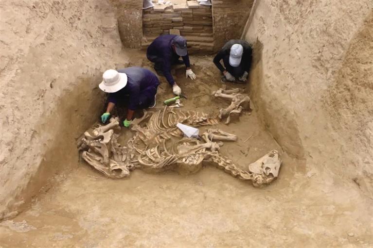 長(zhǎng)嶺M1墓道內(nèi)殉馬現(xiàn)場(chǎng)清理