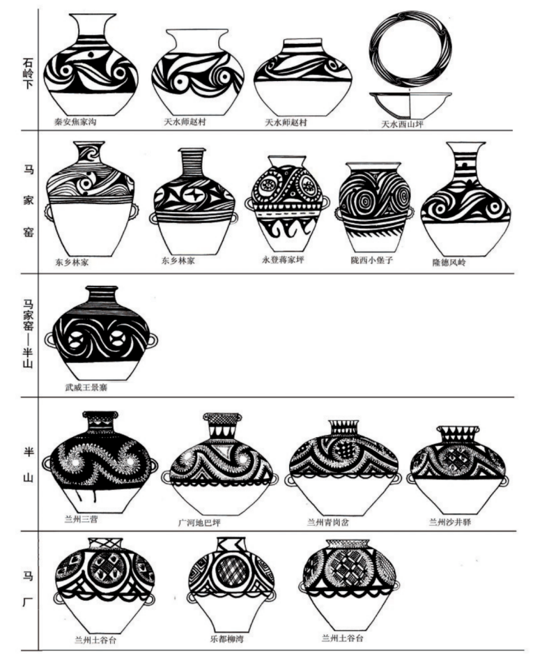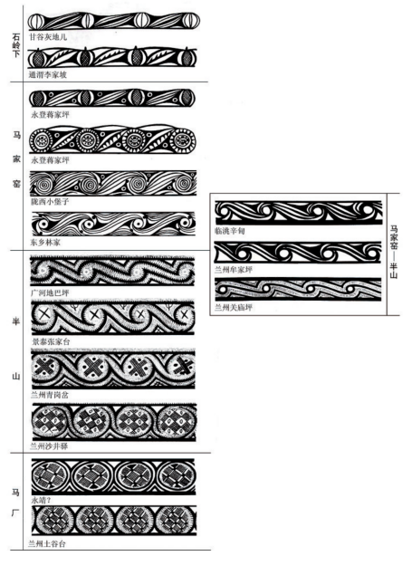 在20世紀五六十年代,在甘肅及鄰近的青海東部地區(qū)新發(fā)現(xiàn)大量的馬家窯文化遺址,同時也進行了一些發(fā)掘工作,為探索馬家窯文化及彩陶的來源進行了深入研究。關(guān)于馬家窯文化與仰韶文化的關(guān)系,體現(xiàn)在彩陶上的線索非常明確,石興邦先生就此進行了探討,他在1962年發(fā)表的一文中認為馬家窯文化彩陶受到廟底溝類型彩陶的影響,紋飾母題與演變規(guī)律都有相似之處。嚴文明先生1978年發(fā)表的《甘肅彩陶的源流》,論及半坡類型向隴東和廟底溝類型向隴西及青海東部的擴展,認為馬家窯文化彩陶的源起與中原地區(qū)的仰韶文化有關(guān)。