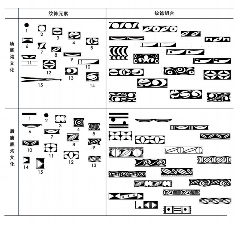 廟底溝、馬家窯文化彩陶由葉片紋、旋紋向四大圓圈紋演變圖示