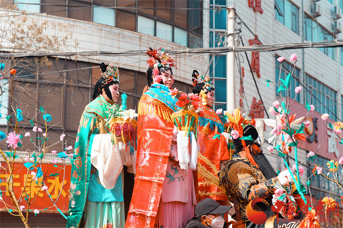 元宵佳節(jié)將至,甘肅莊浪縣群眾在豐富多彩的民俗活動(dòng)中感受祥和喜慶的節(jié)日氛圍,迎接元宵節(jié)的到來。2月2日,民間藝人在平?jīng)鍪星f浪縣表演莊浪社火。