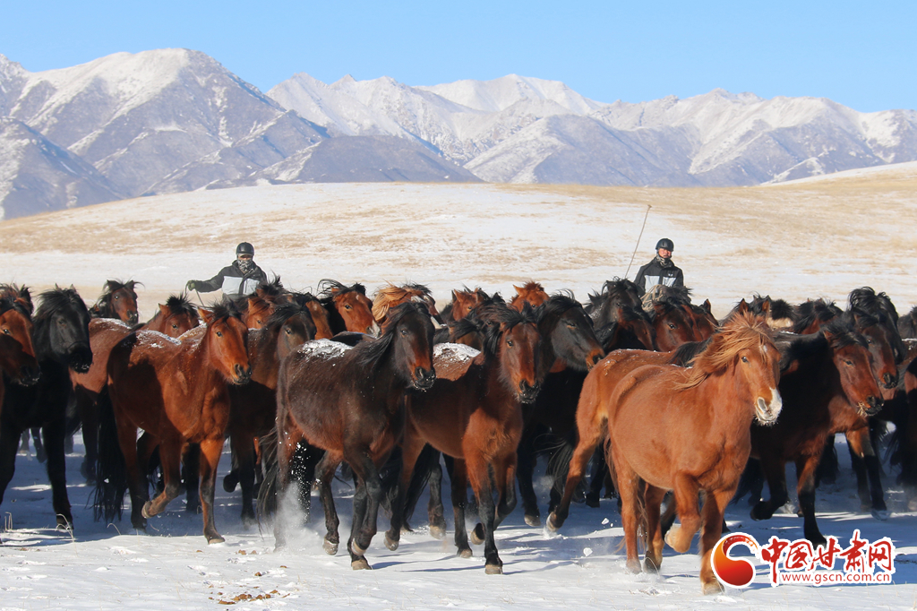 2月9日,在甘肅山丹馬場,上演了萬馬奔騰的壯觀景象,健壯的馬蹄濺起陣陣飛雪,實(shí)屬震撼。