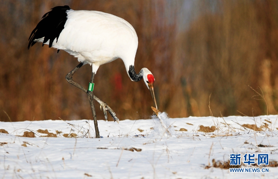 2月14日,雪后初晴,甘肅省張掖國家濕地公園放飛的十余只丹頂鶴翩翩起舞、嬉戲覓食,使雪后的濕地公園充滿生機。新華網發(fā)(陳禮 攝)