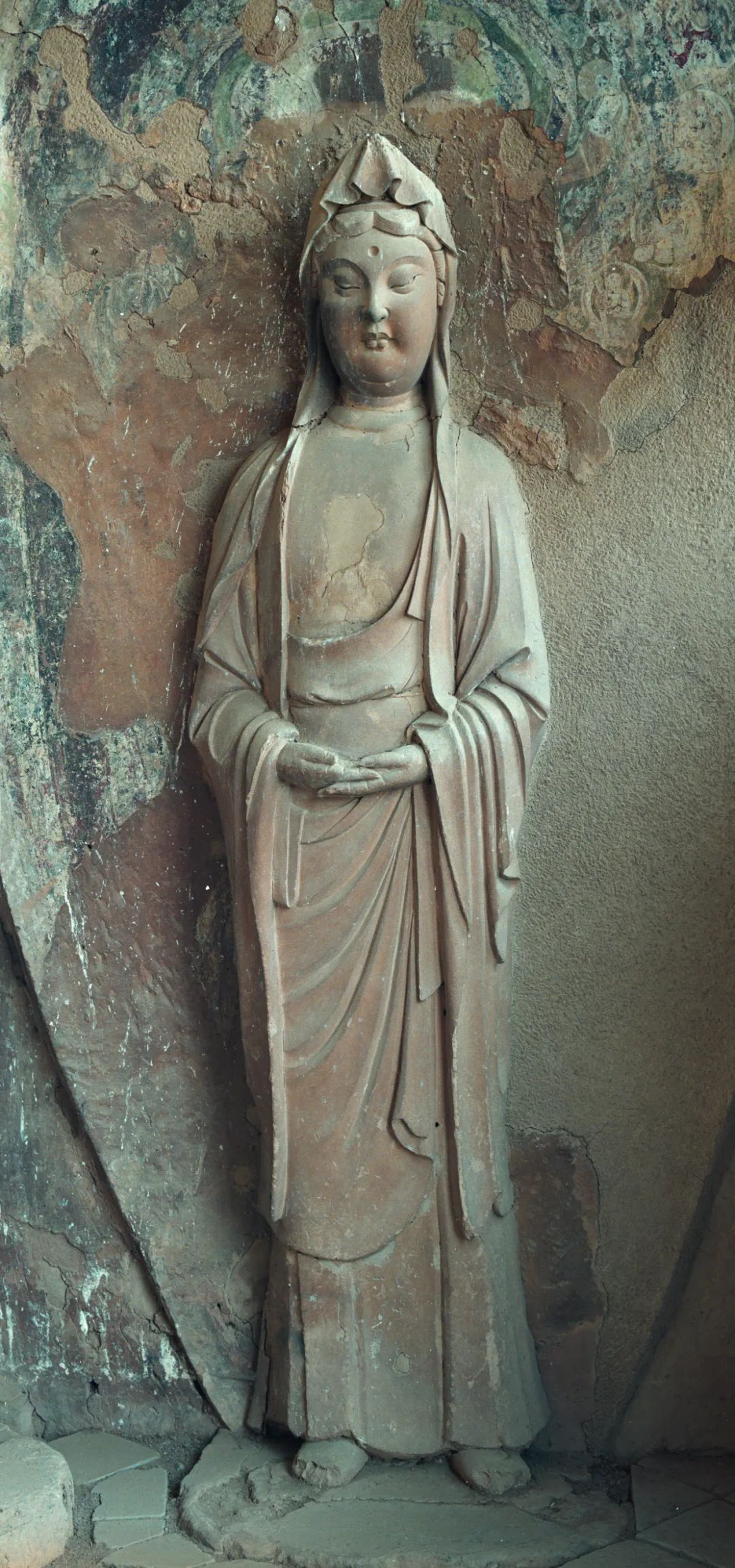 ▲43窟主尊左側(cè)侍女,五代時期。