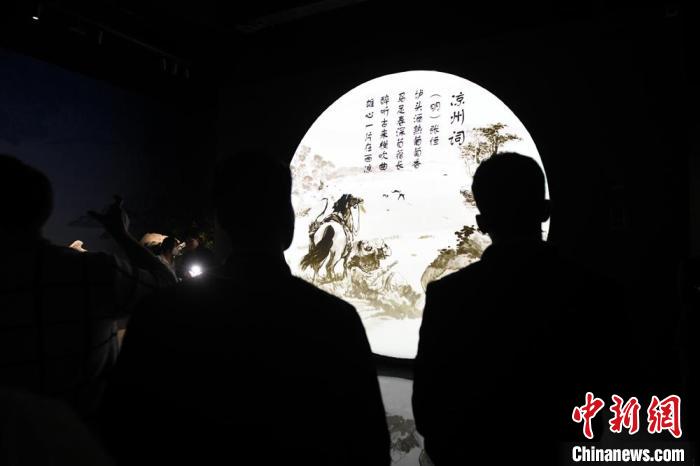 圖為游客在涼州詞館內(nèi)體驗(yàn)閱讀古詩詞?!〈魑牟?nbsp;攝