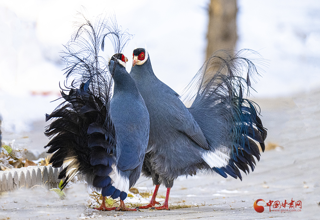近日,祁連山國(guó)家公園甘肅省管理局張掖分局工作人員拍攝到國(guó)家二級(jí)保護(hù)野生動(dòng)物藍(lán)馬雞覓食嬉戲場(chǎng)景。
