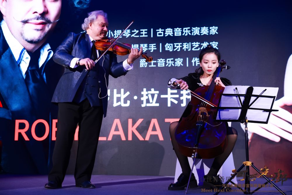 活動現(xiàn)場,張掖、武威、金昌、酒泉、嘉峪關(guān)5市分別展示當(dāng)?shù)氐奈幕糜钨Y源,呈現(xiàn)地方特色節(jié)目,并與甘肅省簡牘博物館共同發(fā)布“通關(guān)簡牘”,發(fā)出邀請“讓世界走進(jìn)河西走廊”。結(jié)合了甘肅特色的各類文藝表演、世界知名小提琴大師羅比·拉卡托斯以及羅馬尼亞藝術(shù)家們帶來的精彩節(jié)目也在活動現(xiàn)場演出。