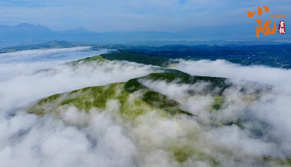 從高處俯瞰,白色的云海在大地上空翻騰涌動(dòng),時(shí)而聚攏,時(shí)而消散,田園、村莊在云霧中時(shí)隱時(shí)現(xiàn),如夢(mèng)如幻。