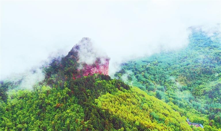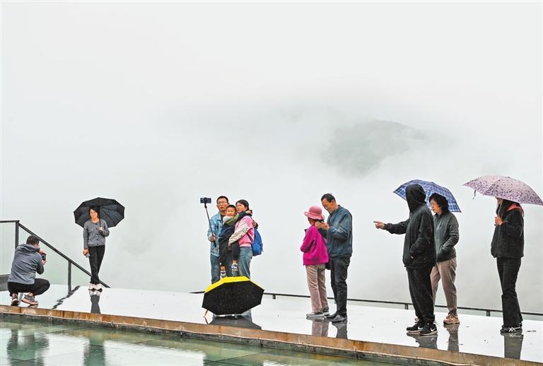 在綿綿細(xì)雨中,麥積奇峰時(shí)隱時(shí)現(xiàn),吸引游客慕名而來(lái)感受“麥積煙雨”的魅力。新甘肅·甘肅日?qǐng)?bào)記者 田 蹊