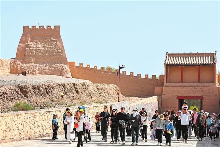 游客在嘉峪關(guān)關(guān)城景區(qū)游覽。 新甘肅·甘肅日?qǐng)?bào)記者 馮樂(lè)凱