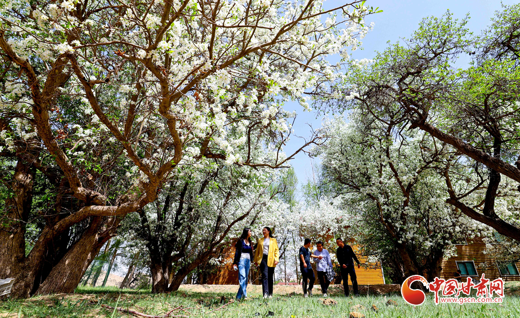 初夏時(shí)節(jié),位于祁連山下的山丹縣大馬營(yíng)鎮(zhèn)焉支花谷里,梨花、楸子花、海棠花等各色花朵盛放,游人和孩子們的嬉笑聲不絕于耳,整個(gè)花谷形成動(dòng)靜結(jié)合的美。