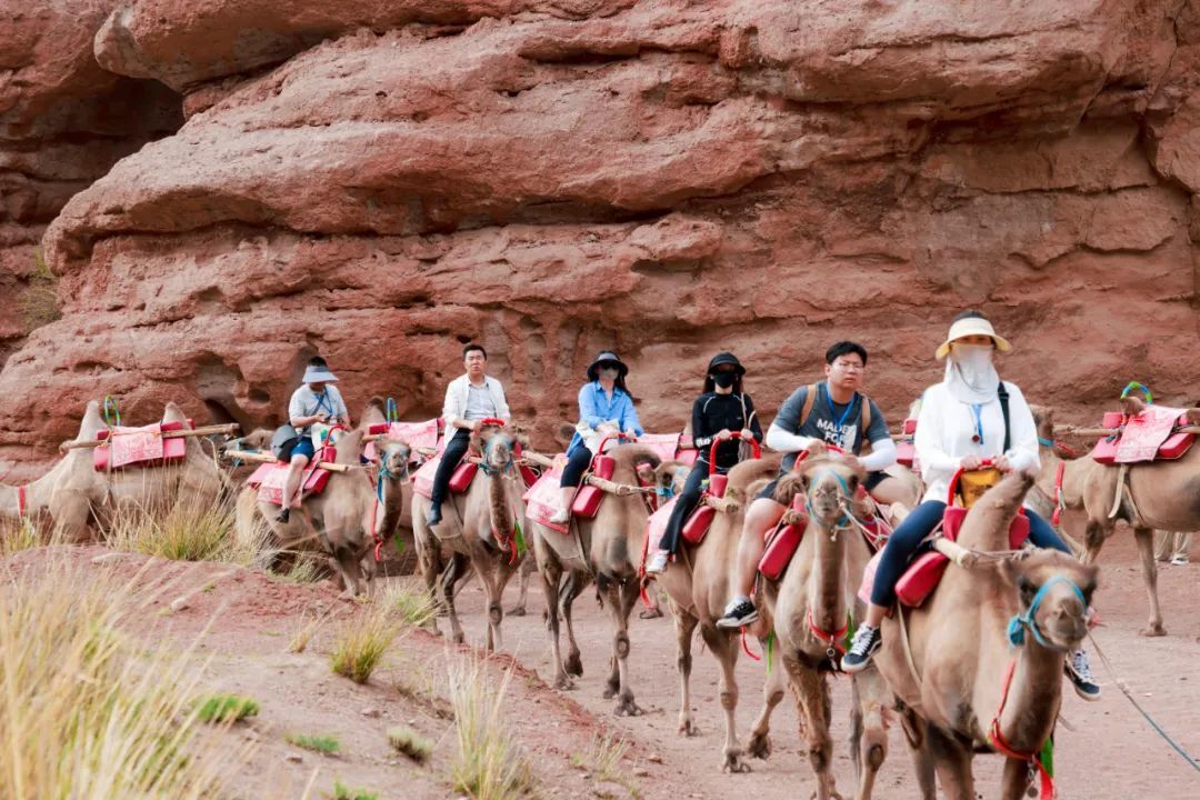 在甘州區(qū)平山湖大峽谷,采風(fēng)團(tuán)成員乘坐越野車進(jìn)入夢幻大峽谷谷底,在藍(lán)天白云下,縱橫的溝壑、林立的群峰、幽靜的森林、蒼茫的戈壁、多彩的民俗讓采風(fēng)團(tuán)成員嘆為觀止。來自福建的微博三百萬大V張文圖說:“我已經(jīng)是第三次來張掖,此刻騎著駱駝踏入峽谷,抬頭看那高聳的崖壁帶來的震撼感瞬間將我包圍。沿著峽谷前行,每一步都充滿驚喜,太讓人驚嘆了。”“這次采風(fēng)活動(dòng)為我們搭建了很好的交流平臺(tái),特別是張掖獨(dú)特的地貌和優(yōu)美的自然風(fēng)光,都是很好的攝影素材,希望大家在這里收獲滿滿!”來自飛翔旅行的曹偉說。