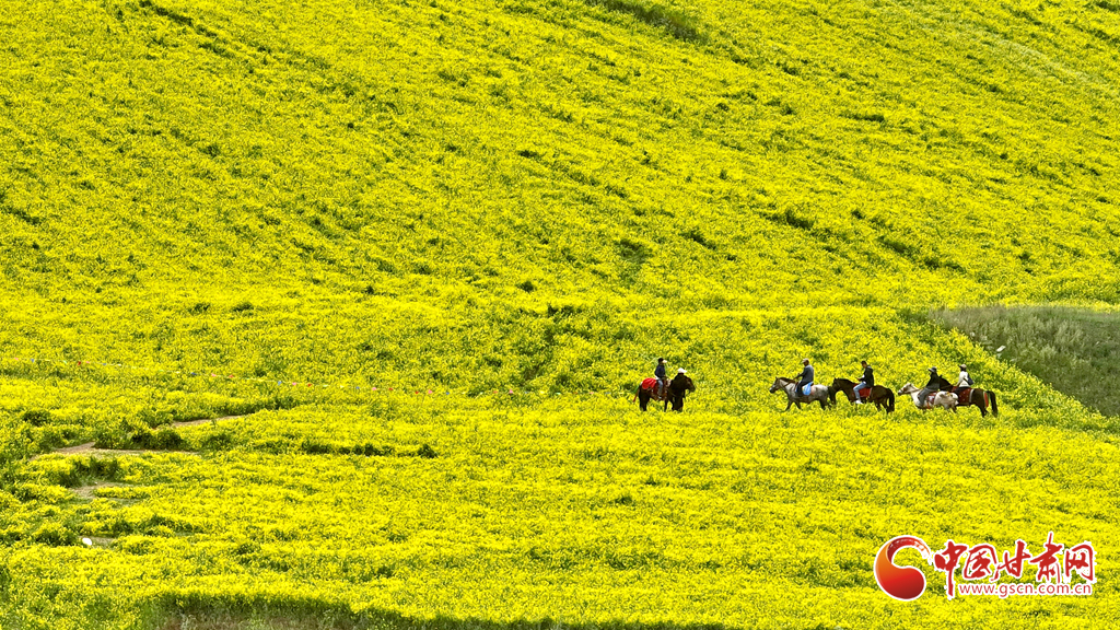 7月24日,位于祁連山北麓的甘肅省張掖市民樂縣扁都口休閑旅游景區(qū),山坡上油菜花競相開放,放眼望去,遍地金黃,宛如黃色花海依偎在祁連山腳下,非常壯觀,成為七月河西走廊一道亮麗的風(fēng)景,吸引了全國各地的游客前來觀賞游覽。