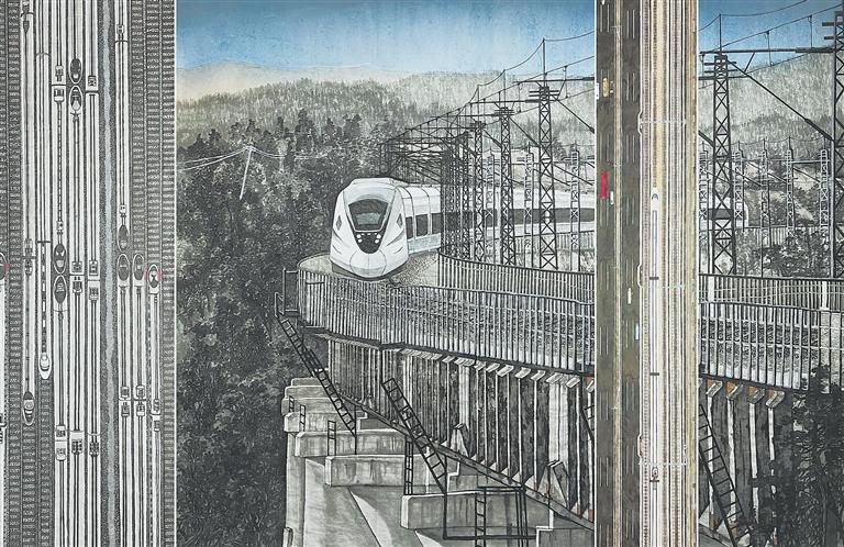 中國高鐵進大山 (中國畫) 劉鋒