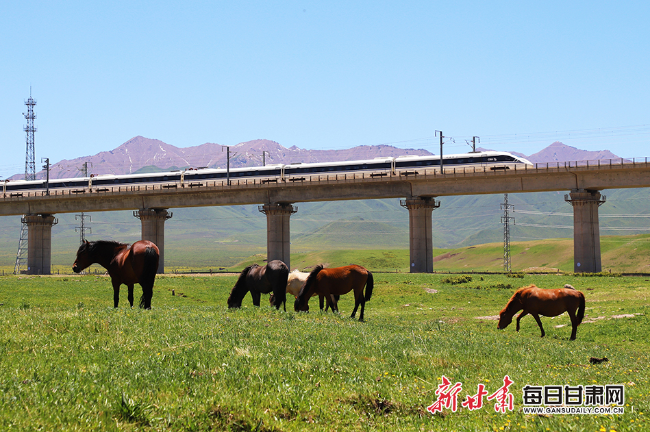 高鐵與馬場(chǎng)構(gòu)成美麗畫卷