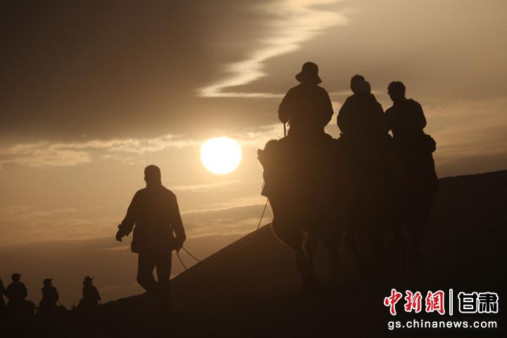 9月1日清晨,游客走進(jìn)甘肅省敦煌市鳴沙山月牙泉景區(qū),乘騎駱駝欣賞大漠風(fēng)光,體驗(yàn)絲路風(fēng)情。