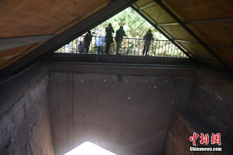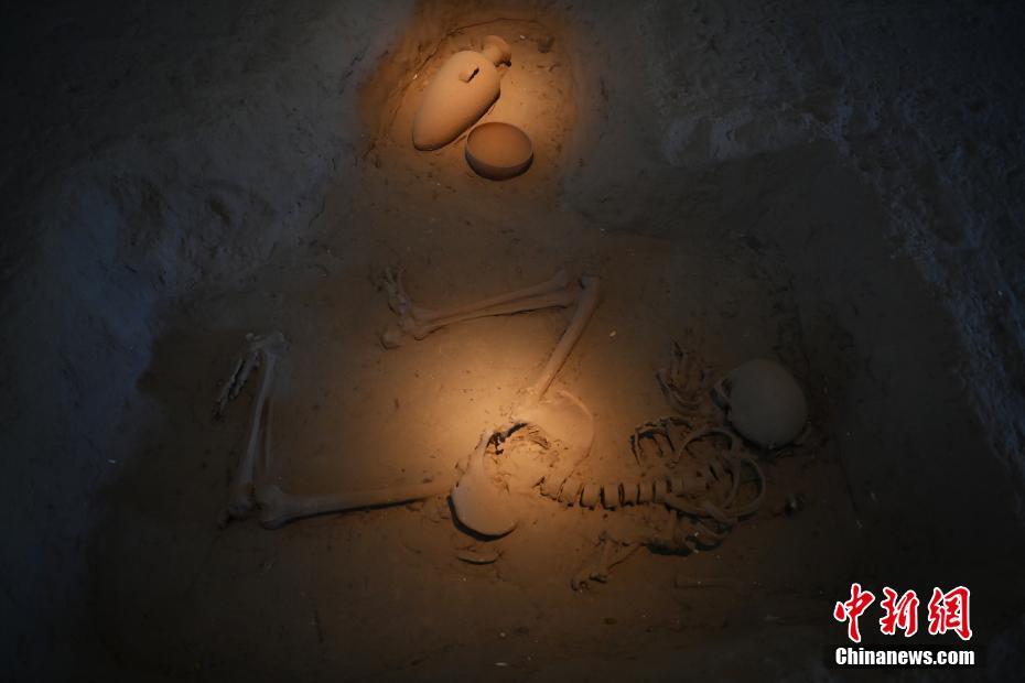 10月22日,2024青年漢學(xué)家研修計(jì)劃甘肅班團(tuán)隊(duì)22個(gè)國(guó)家的青年漢學(xué)家,走進(jìn)甘肅省天水市秦安縣大地灣遺址參觀并進(jìn)行專(zhuān)題研修。大地灣遺址是新石器時(shí)代大型聚落遺址,出土了中國(guó)乃至世界上最早的彩陶文化、最早的文字符號(hào)、種植生產(chǎn)了中國(guó)第一批糧食品種黍、出現(xiàn)了最早的宮殿式建筑、發(fā)明了世界最早的水泥地面、創(chuàng)造了最早的繪畫(huà)作品——F411地畫(huà)。圖為大地灣博物館墓葬701。中新社記者 李亞龍 攝