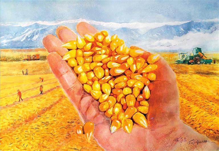 祁連山下豐收忙〔水彩畫〕 范俊杰 作