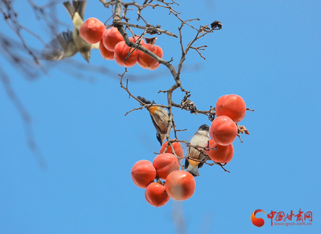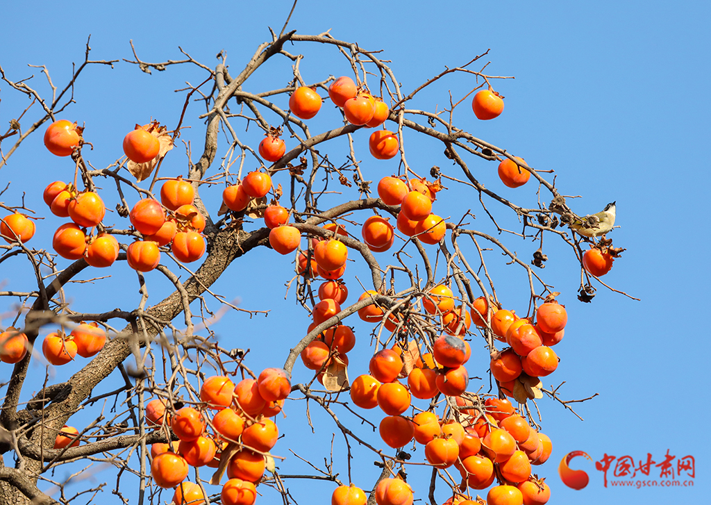 秋去冬來(lái),萬(wàn)物沉寂。在平?jīng)龀缧牛磷訕?shù)上掛滿(mǎn)了果實(shí),又是一年柿子紅。