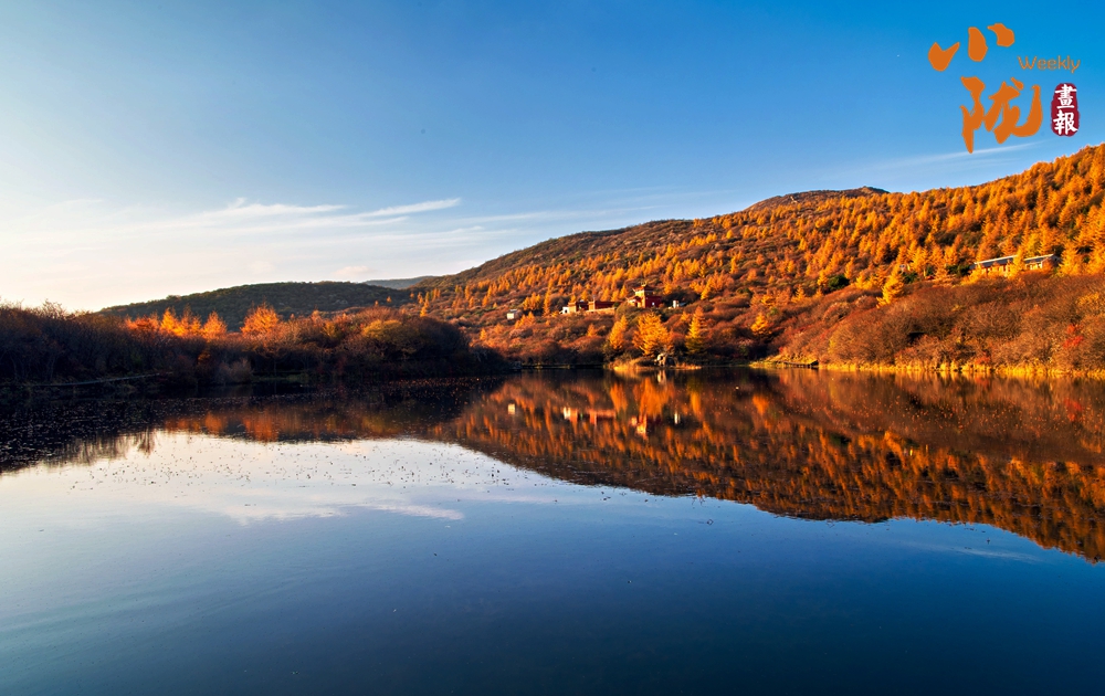 冬日黃昏的余光鋪灑在山間,山映水中,水流山間,湫映碧綠,山光水色,渾然一體,相得益彰,如詩如畫。