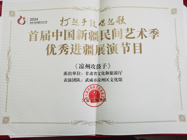 《涼州攻鼓子》入選首屆中國新疆民間藝術(shù)季優(yōu)秀進(jìn)疆展演節(jié)目