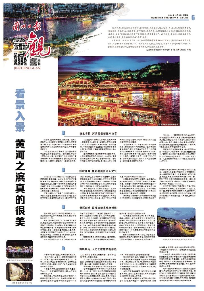 今年國(guó)慶假期,以中山橋、金城關(guān)·黃河古渡為代表的多個(gè)景區(qū)、景點(diǎn)游客量開啟“井噴”模式。僅10月1日至3日,全市累計(jì)接待游客超220萬人次,實(shí)現(xiàn)旅游消費(fèi)超12億元,兩項(xiàng)指標(biāo)均超歷史峰值。