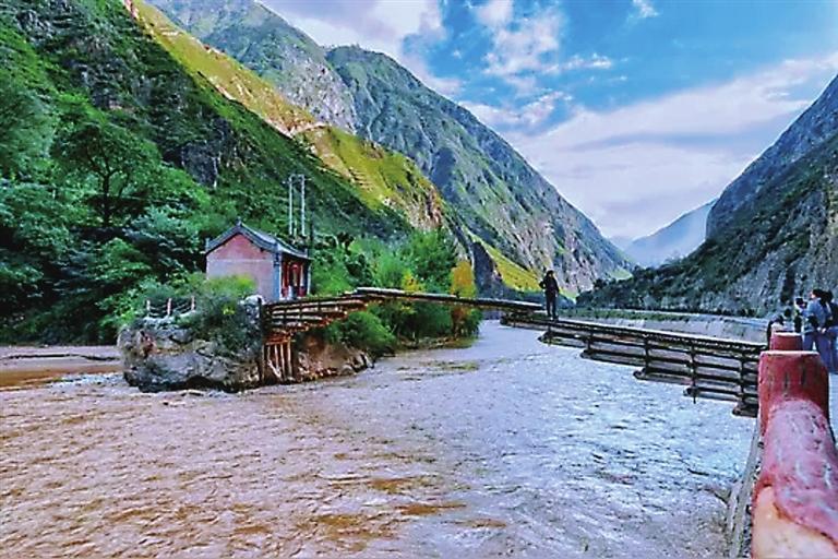 宕昌岷江上的握臂橋。
