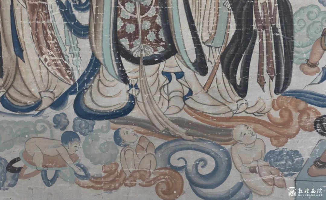 這幅臨摹于榆林窟25窟的化生童子雙手合十,外面蓮花瓣層層盛開(kāi),透過(guò)透明的花苞可以看到童子即將降生,生動(dòng)可愛(ài),和電影中的情節(jié)遙相呼應(yīng)。