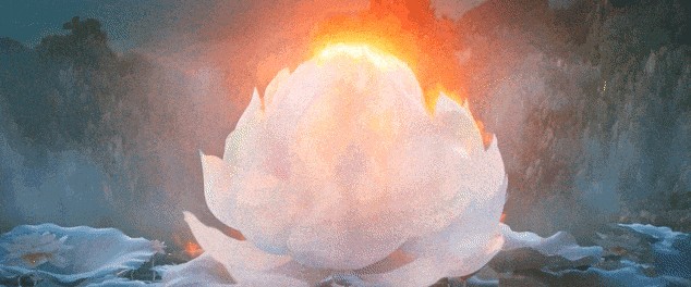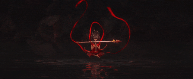 當(dāng)蓮花綻放,哪吒從花瓣中走出,三頭六臂,手持火尖槍,腳踏風(fēng)火輪,那一刻,傳說(shuō)中的少年英雄涅槃了。