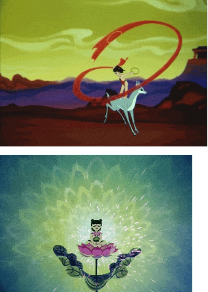從蓮花中誕生的方式,稱作“化生”,在敦煌壁畫之中是一種相當(dāng)高的境界,比凡人在母親懷孕中誕生的“胎生”,要高出很多很多。哪吒以蓮花重生這一情節(jié)的部分靈感可能也來(lái)源于此。