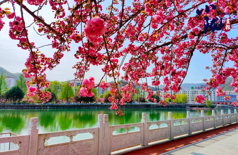時下,隴南紅色兩當(dāng)?shù)臋鸦ㄓ瓉砹怂鼈儬€漫綻放的春季。縣城濱河路的櫻花樹花枝繁碩,濃密的花朵為兩當(dāng)穿上粉色衣衫,倒影廣香河中,嬌艷粼粼、令人動容。
