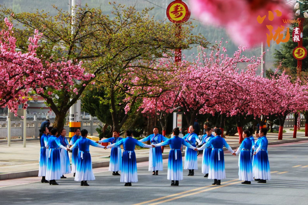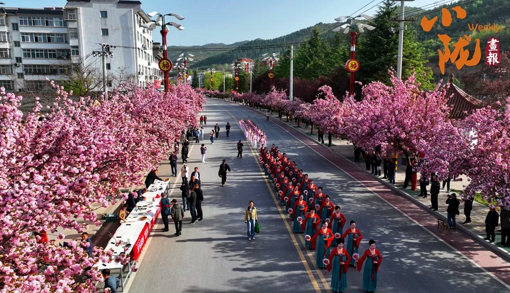 櫻花大道上,來自縣內(nèi)外的旗袍、漢服愛好者,或款步前行、或載歌載舞,古風(fēng)華服與粉色的櫻花交相輝映,為這座小城增添了一份獨特的溫婉與詩意。