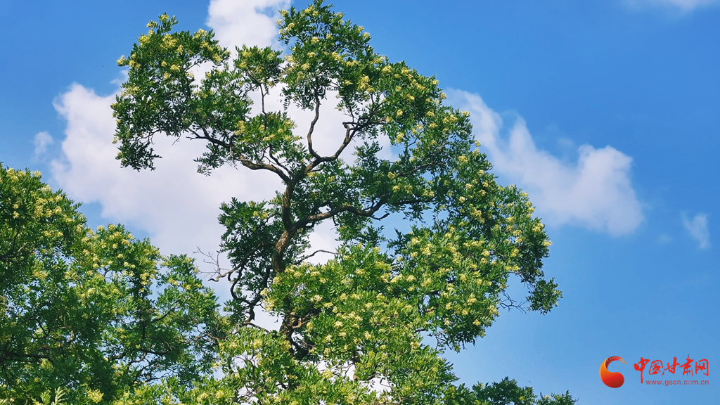 盛夏時(shí)節(jié),崇信縣錦屏鎮(zhèn)關(guān)河村的“華夏古槐王”迎來(lái)盛花期。3200歲的“活文物”枝頭繁花似雪,與隴東南的青山黛色相映成趣。