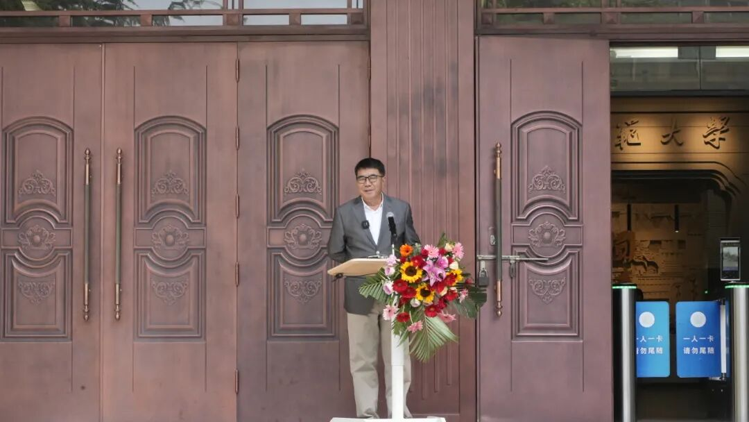 開(kāi)幕式最后,徐兆壽致答謝詞。他說(shuō),做這次展覽的初衷,是因?yàn)樵谶@個(gè)數(shù)字、AI和音視頻的傳播時(shí)代,書寫可以體悟中國(guó)文化的心法。他自三十六歲起開(kāi)始與孔子、老子、鳩摩羅什等圣賢結(jié)緣,五十歲以后又遇見(jiàn)了伏羲、大禹,正是如此多的先賢讓他有了弘道的愿望。同時(shí)特別感謝樓宇烈、莫言、賈平凹、連輯、李敬澤等眾多文化名家的支持,共同呼吁大學(xué)生抄寫經(jīng)典,傳承中華文脈。最后,他呼吁更多的人拿起毛筆或鋼筆,重新書寫,傳承經(jīng)典,弘揚(yáng)傳統(tǒng)文化。