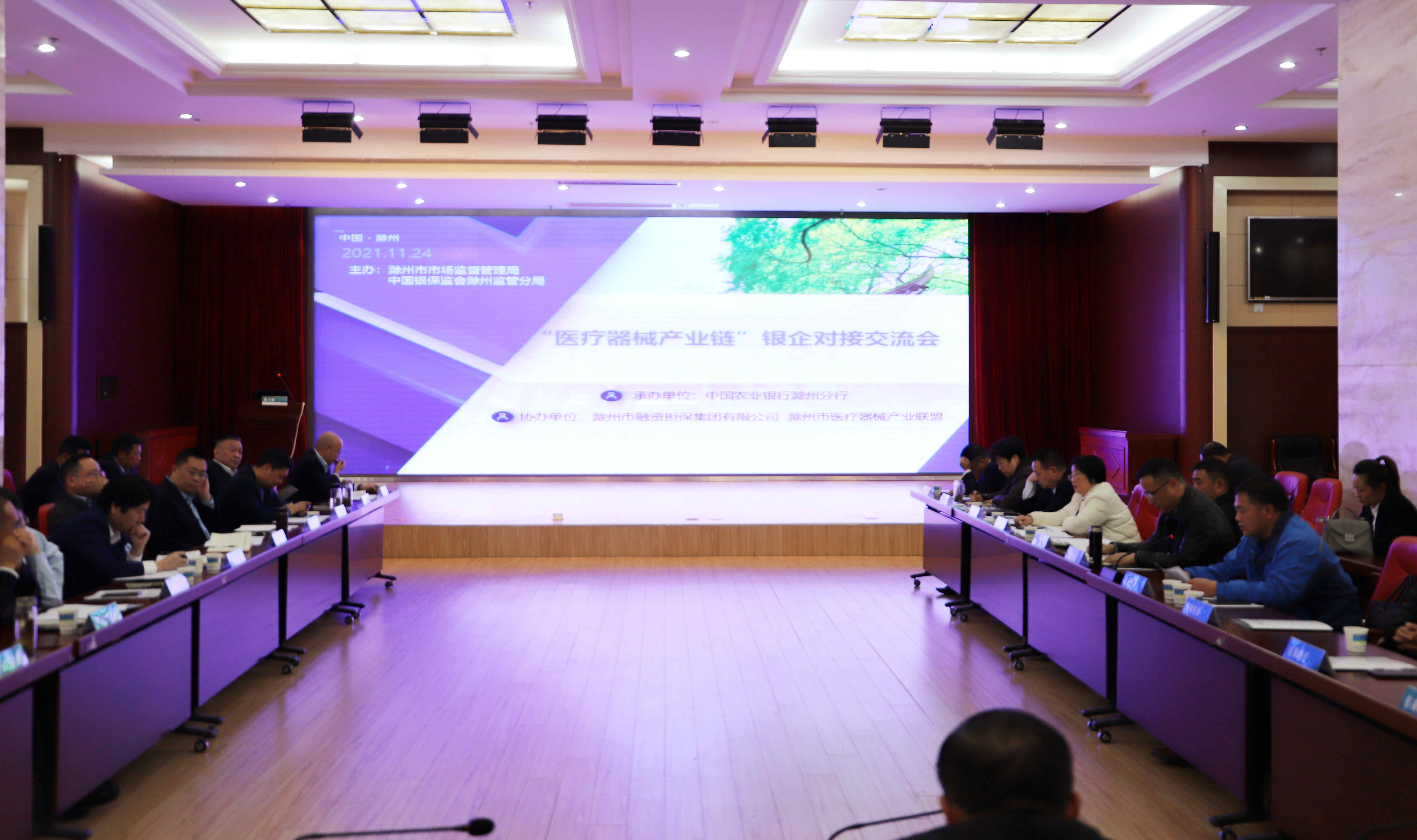 11月24日下午,“醫(yī)藥器械產(chǎn)業(yè)鏈”對(duì)接交流會(huì)在市農(nóng)行滁州分行召開,全市16家金融機(jī)構(gòu)和8家醫(yī)藥器械產(chǎn)業(yè)鏈企業(yè)參加會(huì)議。會(huì)議由滁州銀保監(jiān)分局、滁州市市場(chǎng)監(jiān)督管理局主辦,市擔(dān)保集團(tuán)、市醫(yī)藥器械產(chǎn)業(yè)聯(lián)盟協(xié)辦。