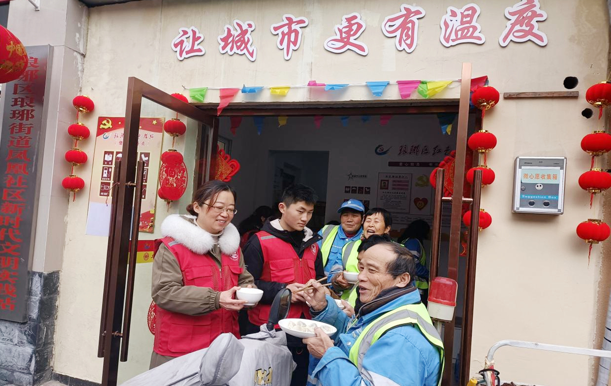 為讓環(huán)衛(wèi)工人感受到節(jié)日祝福和社會關愛,市擔保集團志愿者來到鳳凰社區(qū)開展“大年初一送水餃 溫情暖人心”活動?;顒又校驹刚邆兿颦h(huán)衛(wèi)工人表達溫馨的新春祝福,并送上熱氣騰騰的餃子,為新春佳節(jié)增添了濃濃的年味。