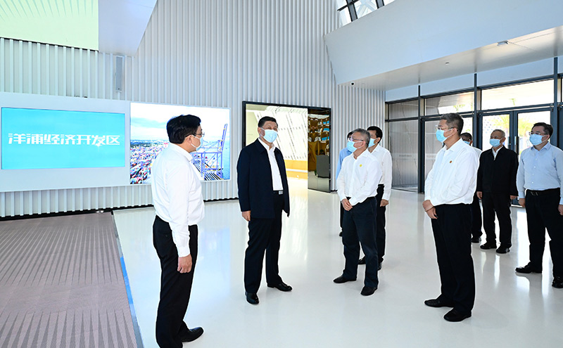 隨后,習(xí)近平來到洋浦國際集裝箱碼頭小鏟灘港區(qū),了解港口建設(shè)發(fā)展情況,同現(xiàn)場作業(yè)人員、掛職干部代表等親切交流。習(xí)近平強調(diào),振興港口、發(fā)展運輸業(yè),要把握好定位,增強適配性,堅持綠色發(fā)展、生態(tài)優(yōu)先,推動港口發(fā)展同洋浦經(jīng)濟開發(fā)區(qū)、自由貿(mào)易港建設(shè)相得益彰、互促共進,更好服務(wù)建設(shè)西部陸海新通道、共建“一帶一路”。他指出,黨中央選派干部來自由貿(mào)易港掛職,既體現(xiàn)了黨中央對自由貿(mào)易港建設(shè)的關(guān)心和支持,也是對干部的培養(yǎng)鍛煉,要發(fā)揮掛職干部的積極作用,讓他們在基層一線增長才干。