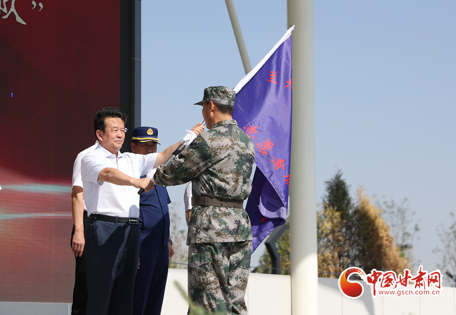 市委常委、政法委書記魏晉文同志為蘭州高新區(qū)“退役軍人志愿者服務(wù)隊”授旗