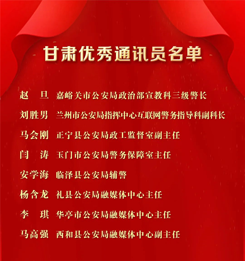 甘肅8名民輔警獲評人民公安報“2022年度優(yōu)秀通訊員”