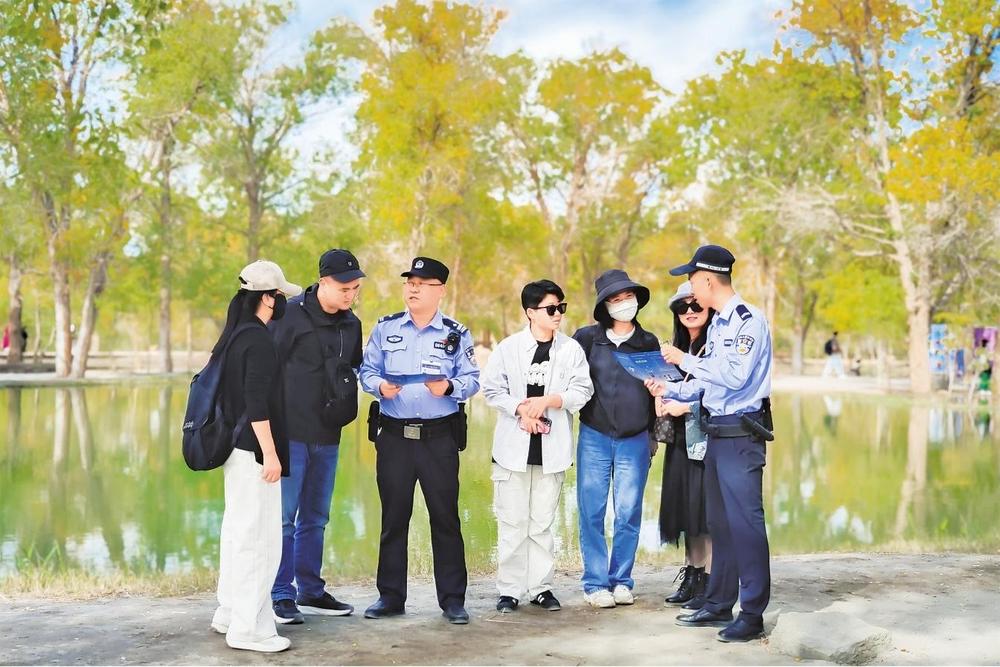 同時,運用智慧警務(wù)加強對景區(qū)人流量的動態(tài)掌握,適時調(diào)整巡防策略,在林區(qū)、夜市、游樂場等關(guān)鍵部位,民輔警利用大喇叭播報安全提示、面對面宣講等方式,有針對性開展防火防盜、交通安全、預(yù)防電詐等安全知識宣傳,向游客傳播“胡楊精神”、講好金塔故事,用“零距離”服務(wù)、全時空守護提升游客獲得感、幸福感和滿意度。