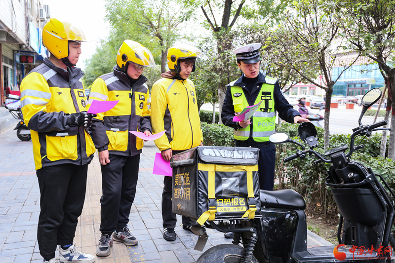 原標(biāo)題:平?jīng)觯横轻冀痪癁橥赓u小哥“配送”交通安全餐
