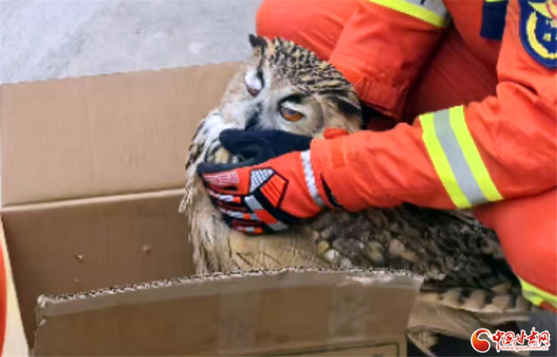 經(jīng)工作人員辨認,該鳥類為雕鸮,屬國家二級保護動物,經(jīng)檢查該雕鸮無外傷,符合放生條件,遂將其帶到安全區(qū)域后放回了大自然。
