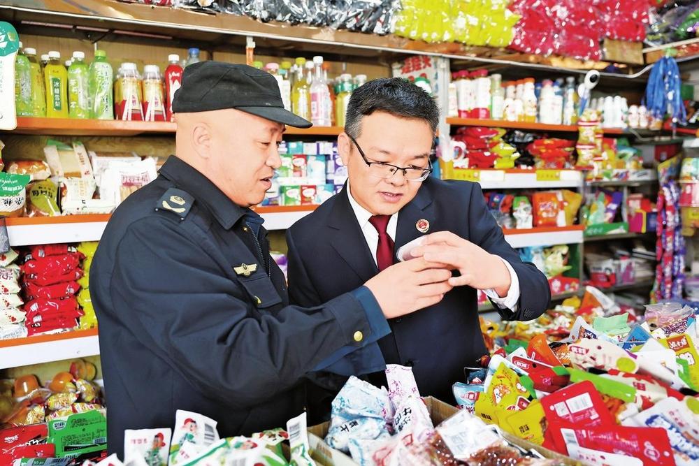 民勤縣檢察院聯(lián)合縣市場(chǎng)監(jiān)管局對(duì)校園周邊小賣部、超市等重點(diǎn)場(chǎng)所開展食品安全專項(xiàng)檢查,護(hù)航未成年人健康成長(2024年3月25日拍攝)。