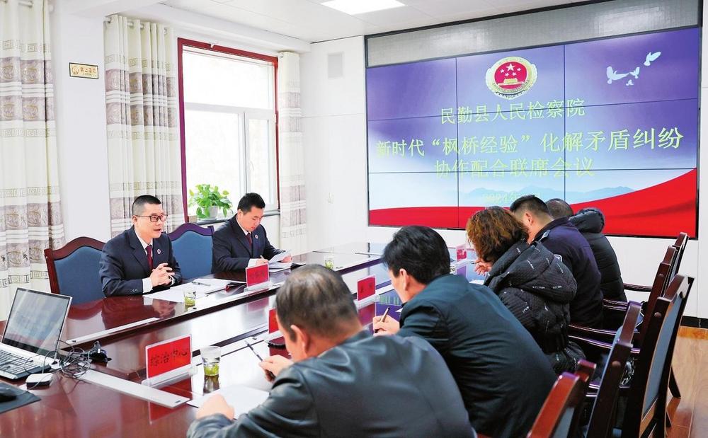 民勤縣檢察院召開新時(shí)代“楓橋經(jīng)驗(yàn)”化解矛盾糾紛協(xié)作配合聯(lián)席會(huì)議,用心用力用情化解各類矛盾糾紛(2024年3月19日拍攝)。