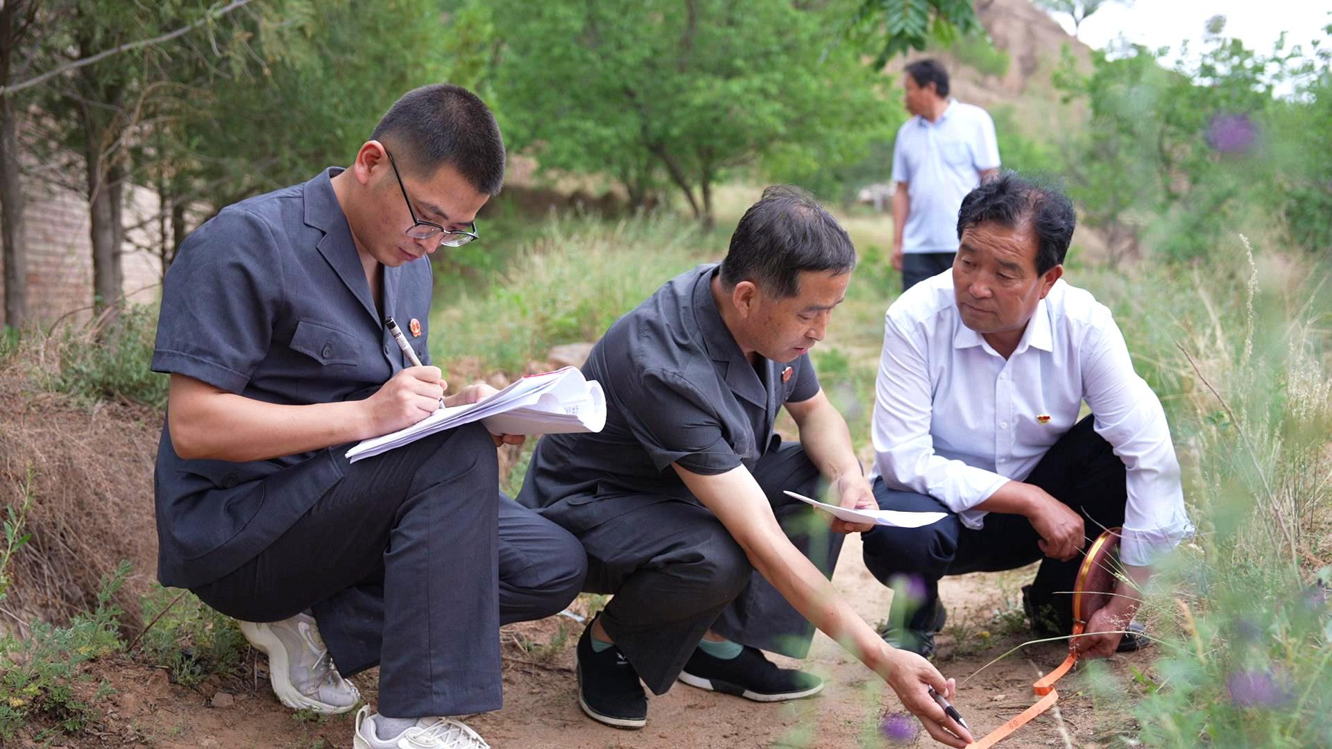 鎮(zhèn)原縣法院開邊法庭現(xiàn)場調(diào)處一起相鄰權(quán)糾紛(慶陽市中級人民法院供圖)
